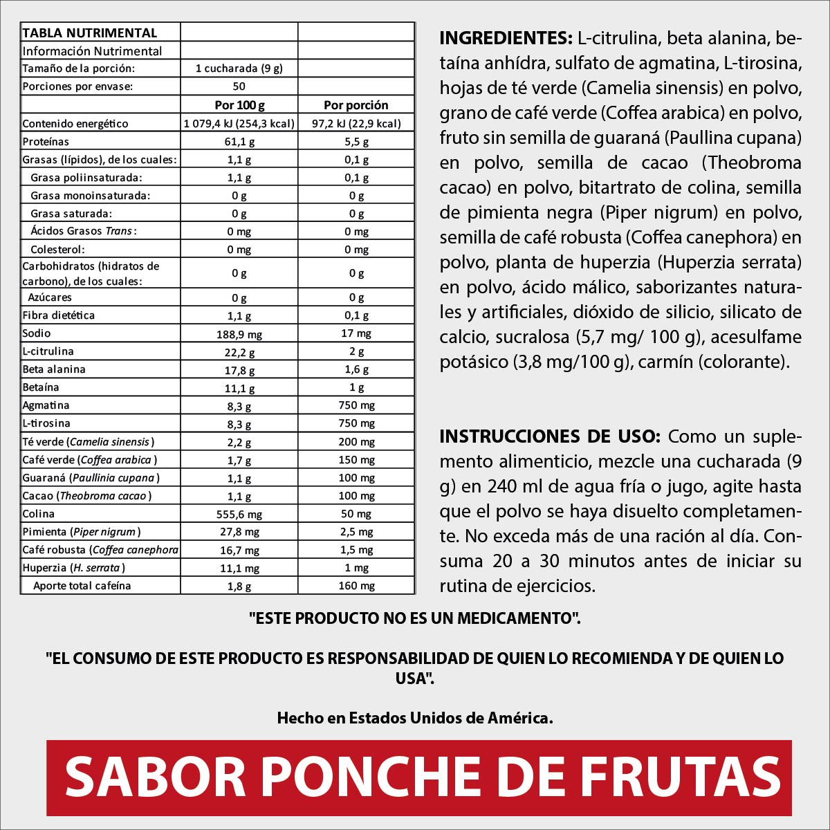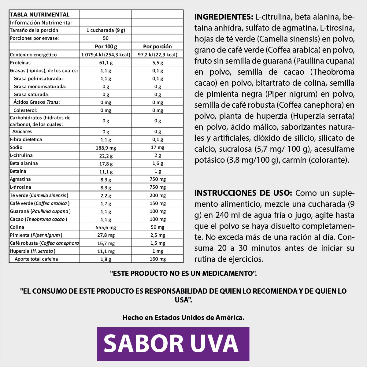 ESTE PRODUCTO NO ES UN MEDICAMENTO. EL CONSUMO DE ESTE PRODUCTO ES RESPONSABILIDAD DE QUIEN LO RECOMIENDA Y DE QUIEN LO USA.